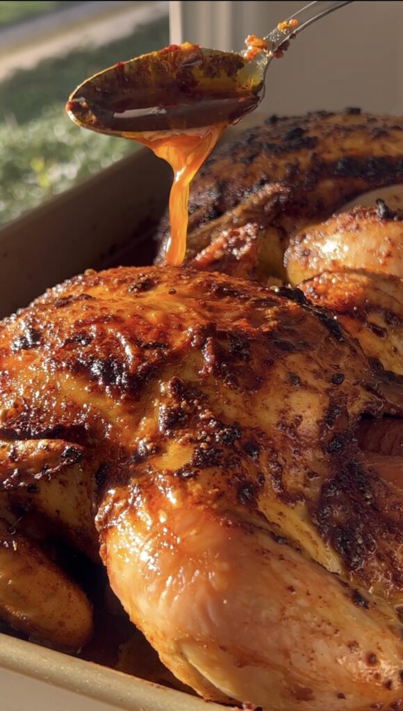 Why it’s cost-effective & festive: Whole chickens are much cheaper per pound than turkey (especially smaller turkeys or turkey breasts). You still get a centerpiece roast, golden skin, the aromatics, drippings for gravy, and leftovers.